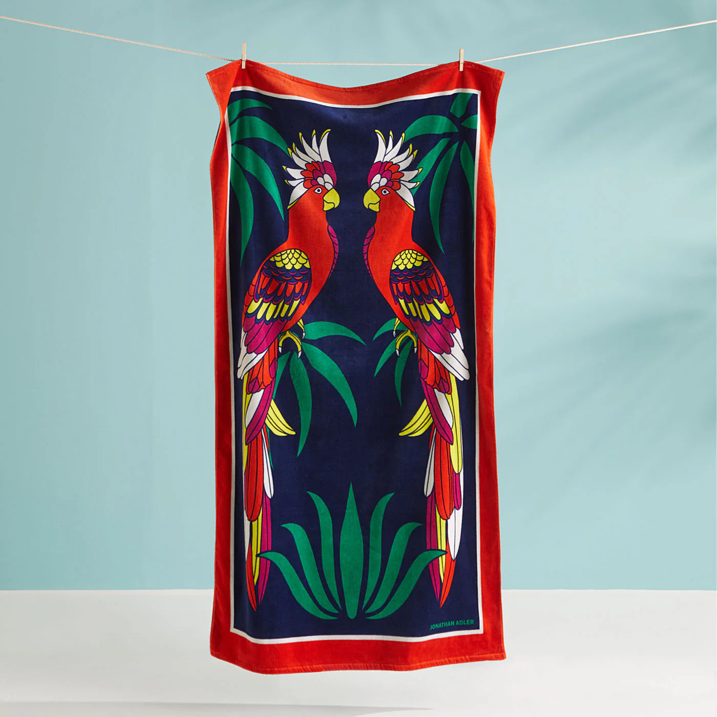 Channel the spirit of resort glamour with our generously sized, thick and thirsty beach towels. Featuring a pair of preening island-flockers, our Parrots Beach Towel is trés chic tropical treat. White sand beach to infinity pool, they look as good draped across a chaise lounge as they do wrapped around your shoulders.