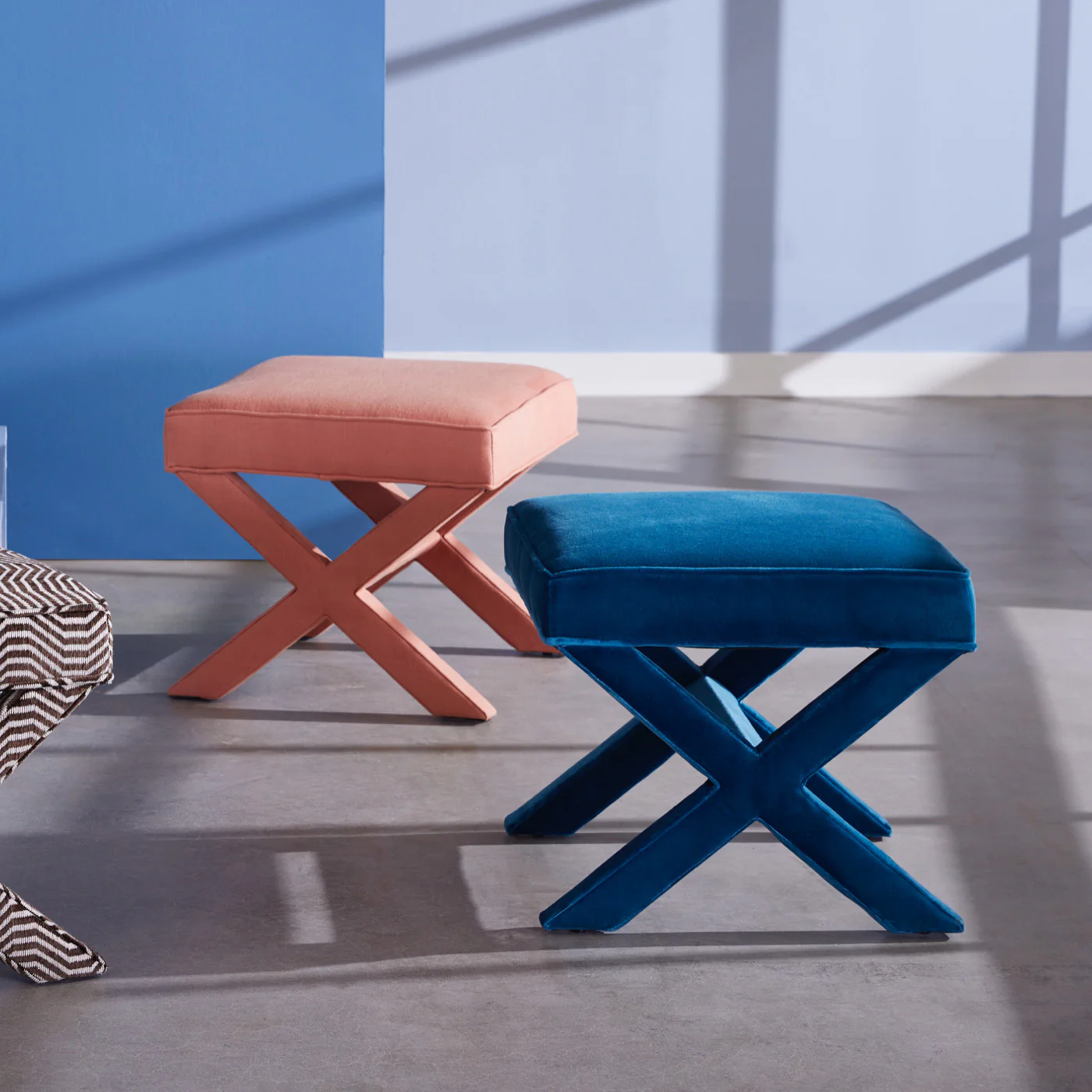 Add décorateur flair to your home with our fabulously versatile X-Bench. A veteran multitasker, the X-Bench pulls triple duty as extra seating, a footstool, or a mini cocktail table (when topped with one of our trays). Try a pair opposite a sofa, under a console, or at the foot of your bed.